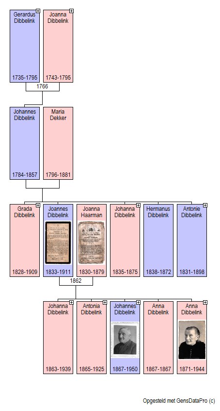 4 kinderen van Joannes en Gerada zijn geboren in Warken en gedoopt in de Nieuwkerk te Zutphen. In 1877 is de familie Dibbelink verhuisd naar Geesteren.