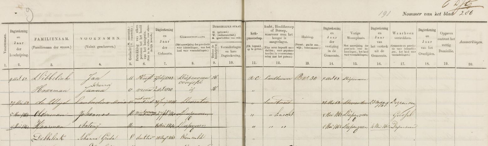 Joannes Dibbelink en Joanna Gerada Haarman hebben zich op 9 maart 1862 gevestigd in Warken in Warnsveld op Erve Korenblik.